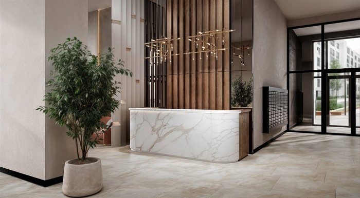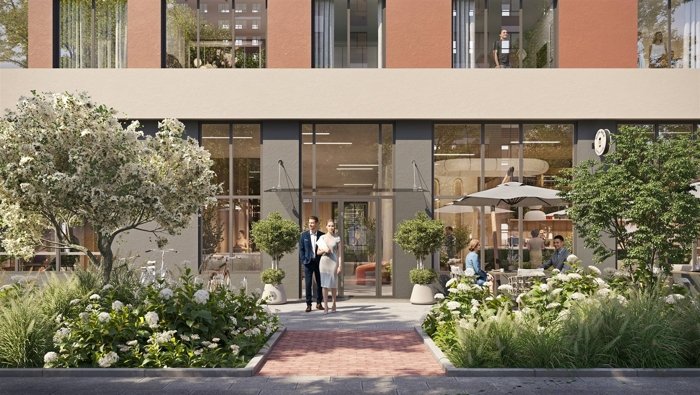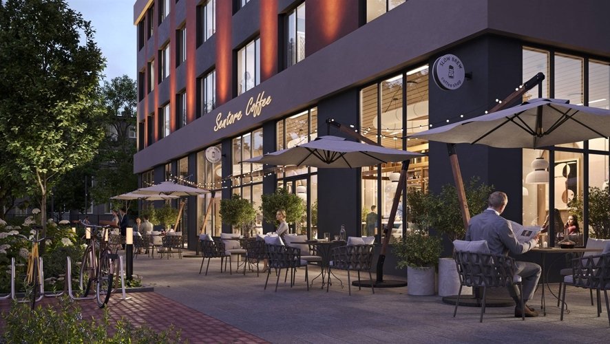 прозрачных входных групп на уровне земли. Много естественного света. Легко заходить внутрь