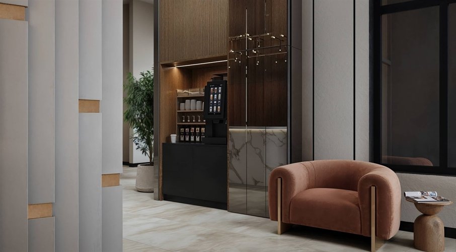 для ожидания такси, курьера или встречи гостей. Вы чувствуете себя в холле дорогого отеля. Полистать книги, провести деловую встречу - все условия для этого созданы, включая скоростной Wi-Fi и кофе