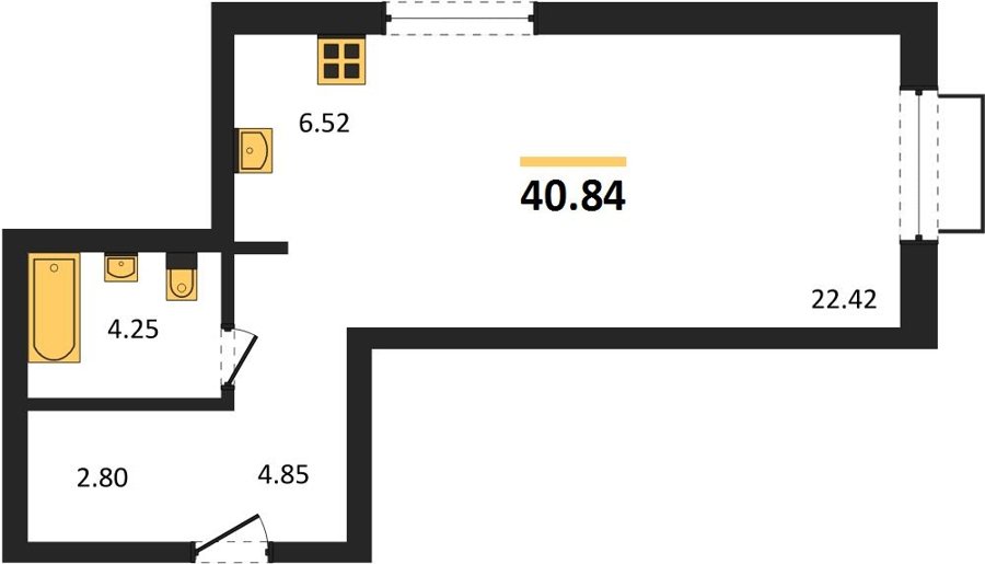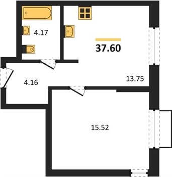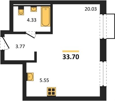 Площадь от 33.48 м2