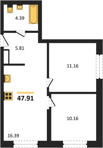 Площадь от 47.91 м2