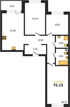Площадь от 75.13 м2