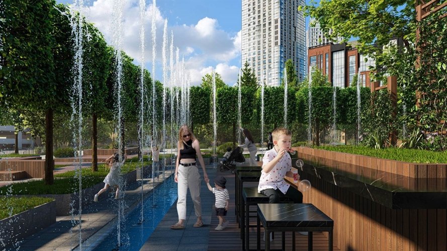 Архитектурный ансамбль логически продолжает сдержанный «сталинский ампир» и приносит в новый район ощущение света и пространства.