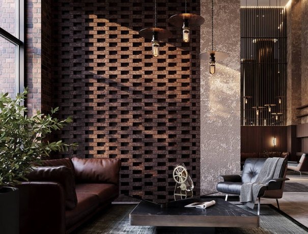 в текстурах мрамора, дерева и травертина и уютные зоны ожидания с кожаными диванами