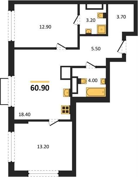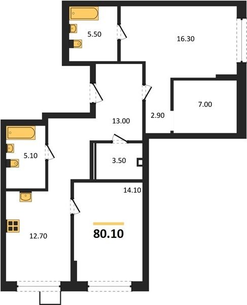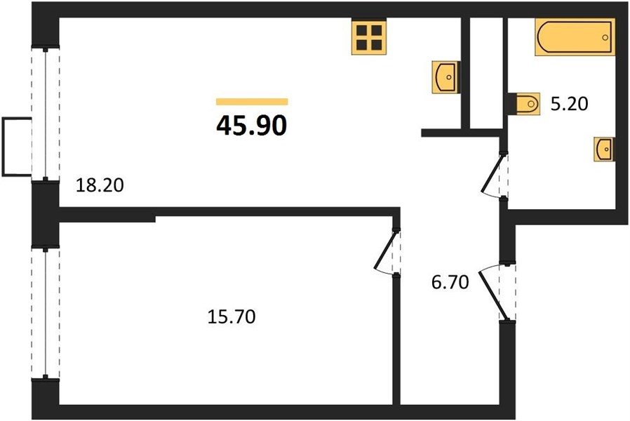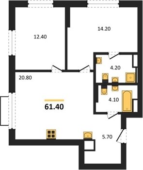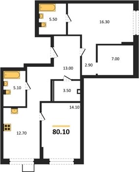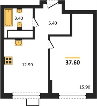 Площадь от 35.8 м2
