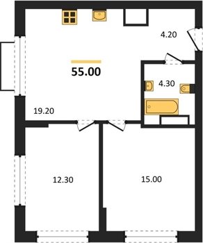 Площадь от 54.7 м2