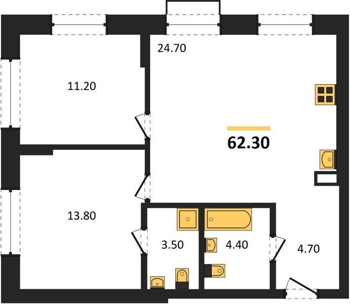 Площадь от 24.8 м2